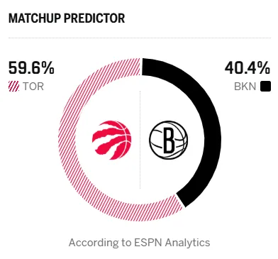 [流言板]ESPN預測明日比賽:猛龍勝率59.6%,籃網勝率40.4%