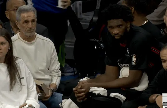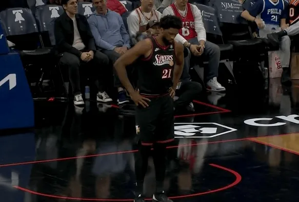 第三節(jié)比賽中,目前恩比德下半場(chǎng)開(kāi)局跑位時(shí)被意外絆倒摔到膝蓋受傷,已經(jīng)隨后被換下場(chǎng)走回更衣室,上半場(chǎng)10中7拿到19分。