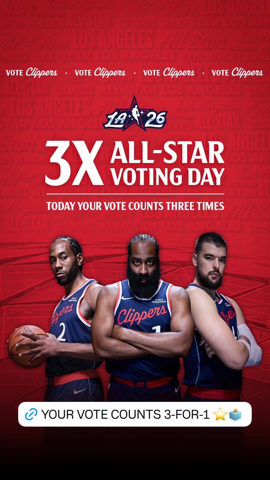 [流言板]請(qǐng)投票!快船官方曬出哈登倫納德和祖巴茨的全明星拉票海報(bào)