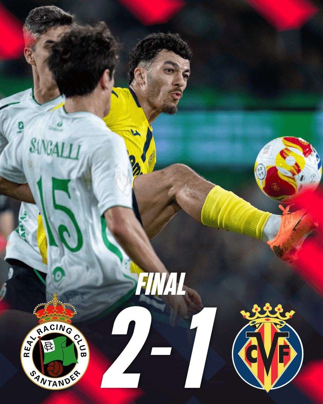 虎撲12月18日訊 西班牙國王杯第三輪,比利亞雷亞爾客場1-2不敵西乙領(lǐng)頭羊桑坦德競技被淘汰出局。次被