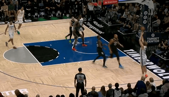 比賽的接球第四節(jié),蘭代爾底角接球三分再中,分再砍下20分10籃板并殺死比賽。中砍