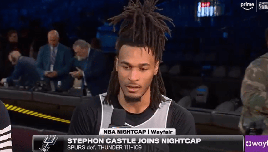 馬刺球員斯蒂芬-卡斯?fàn)柸珗?chǎng)出戰(zhàn)34分鐘,16投9中,三分5中2、罰球2中2得到22分6籃板2助攻。