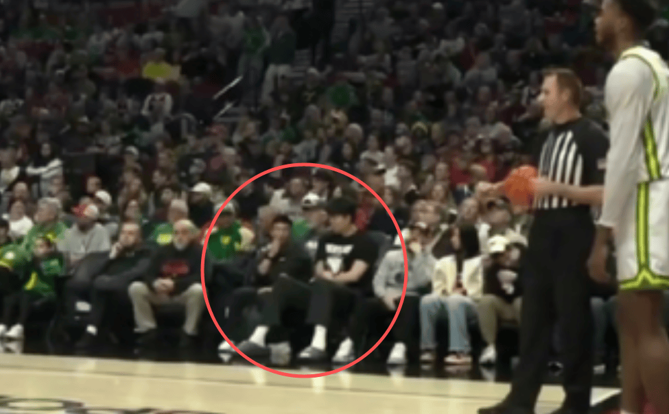 開拓者球員楊瀚森被拍到,作客者主與自己的開拓翻譯在場支持正為俄勒岡大學(xué)出戰(zhàn)的老鄉(xiāng)林葳。