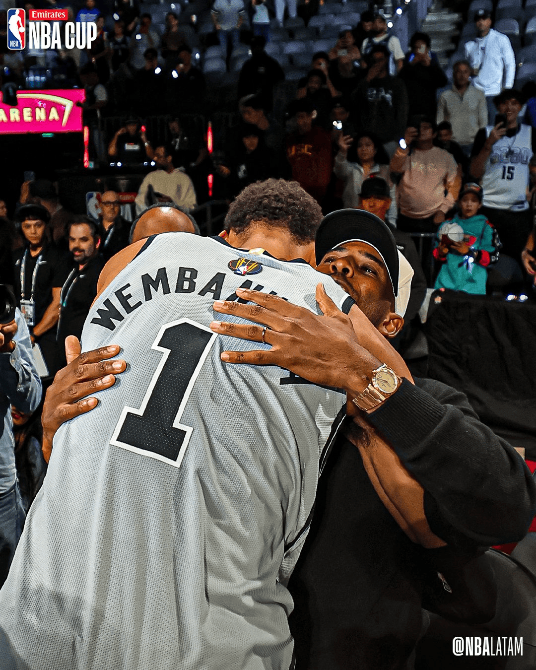 賽后,師傅賽后文班亞馬走回球員通道時,與在場邊觀戰(zhàn)的克里斯-保羅擁抱、寒暄。