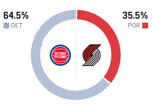 賽前,日比美媒ESPN預(yù)測(cè)本場(chǎng)比賽,賽勝塞高開(kāi)拓者勝率為35.5%,而活活塞勝率為64.5%。