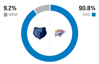 [流言板]ESPN預(yù)測明日比賽勝率:雷霆高達90.8%,而灰熊僅為9.2%