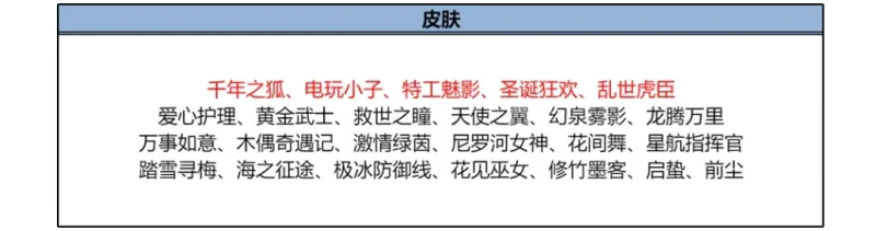 而史詩皮膚這塊,則有李白的千年之狐+魯班七號的電玩小子+百里玄策的特工魅影+呂布的圣誕狂歡+張飛的亂世虎臣。