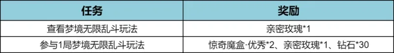 該玩法會結(jié)合夢境大亂斗+無限亂斗的機(jī)制,期間,完成以上兩個任務(wù),也可以獲得2x驚奇魔盒·優(yōu)秀。