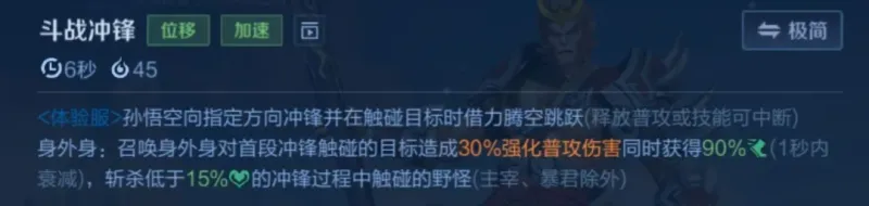 第一點,二技能移除了碰撞野怪的額外傷害,改為命中任何目標(biāo)都可以召喚身外身,打出30%的強(qiáng)普傷害。