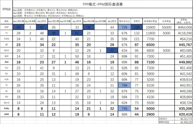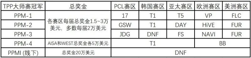PPMI戰(zhàn)隊(duì)得分、獎(jiǎng)金數(shù)據(jù)表: