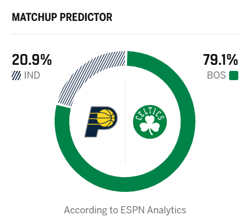 [流言板]ESPN預(yù)測(cè)明日比賽:凱爾特人勝率79.1%,步行者勝率20.9%