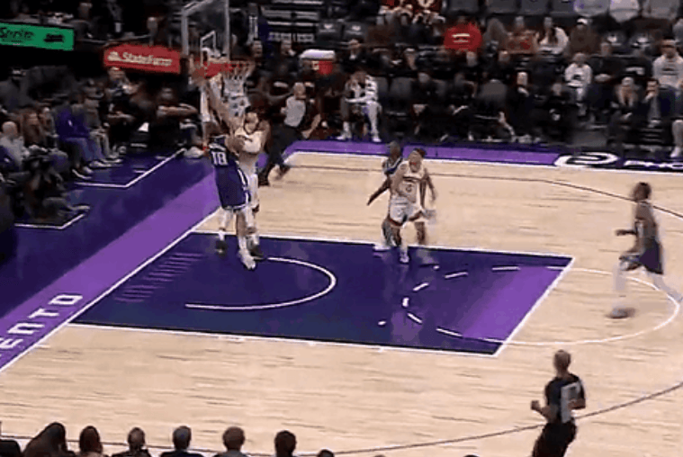 第二節(jié)比賽,挑戰(zhàn)威少直殺籃筐欲上籃,申京送出申京高高躍起送出無(wú)情大帽。高高