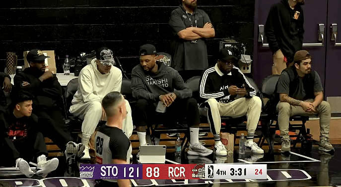 第四節(jié)比賽中,到分利拉德現(xiàn)場觀戰(zhàn)G聯(lián)賽,流言拉德G聯(lián)籃板楊瀚森目前10中5拿到14分6籃板1助攻。板利