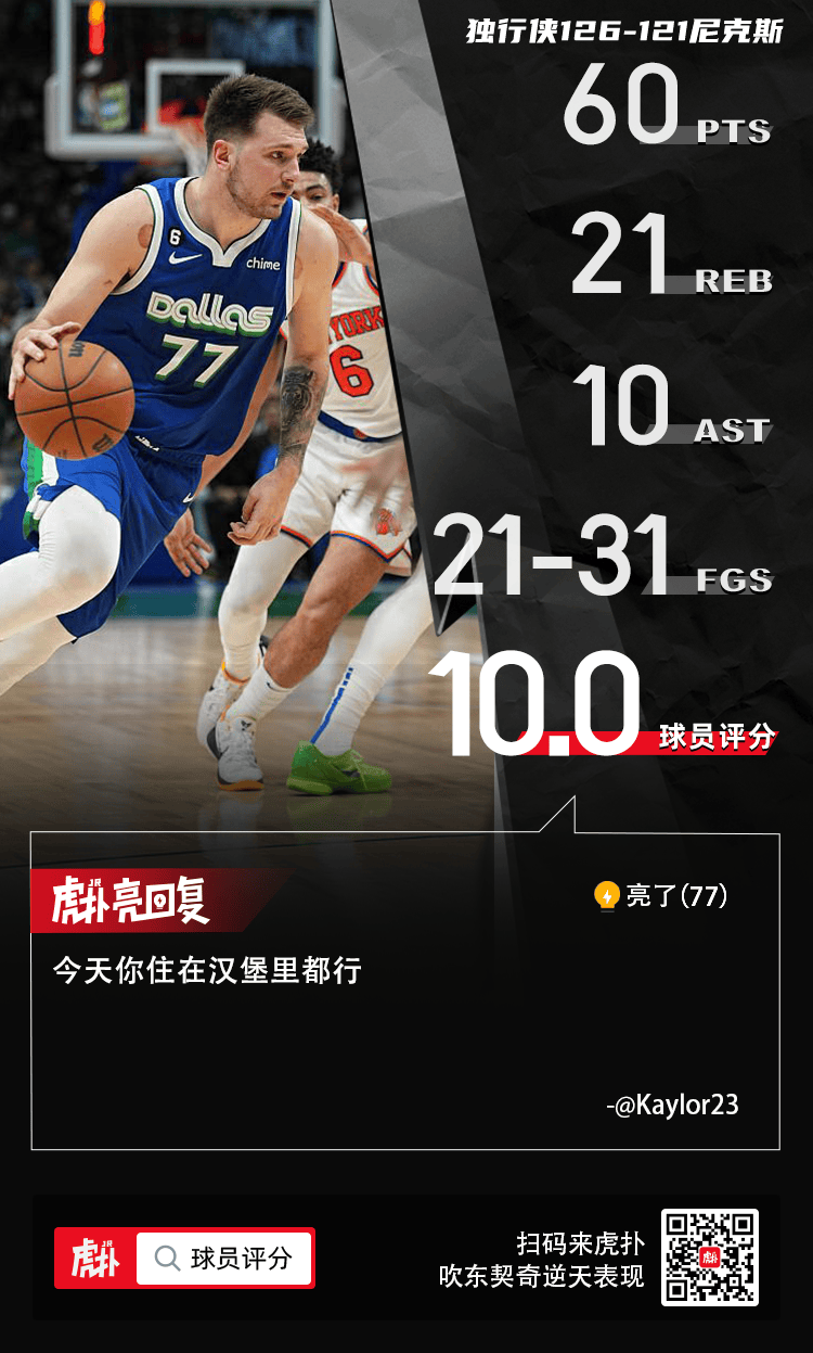 [流言板]實(shí)時更新:東契奇目前已得到60分21籃板10助攻由虎撲籃球資訊 發(fā)表在籃球資訊 https://bbs.hupu.com/502