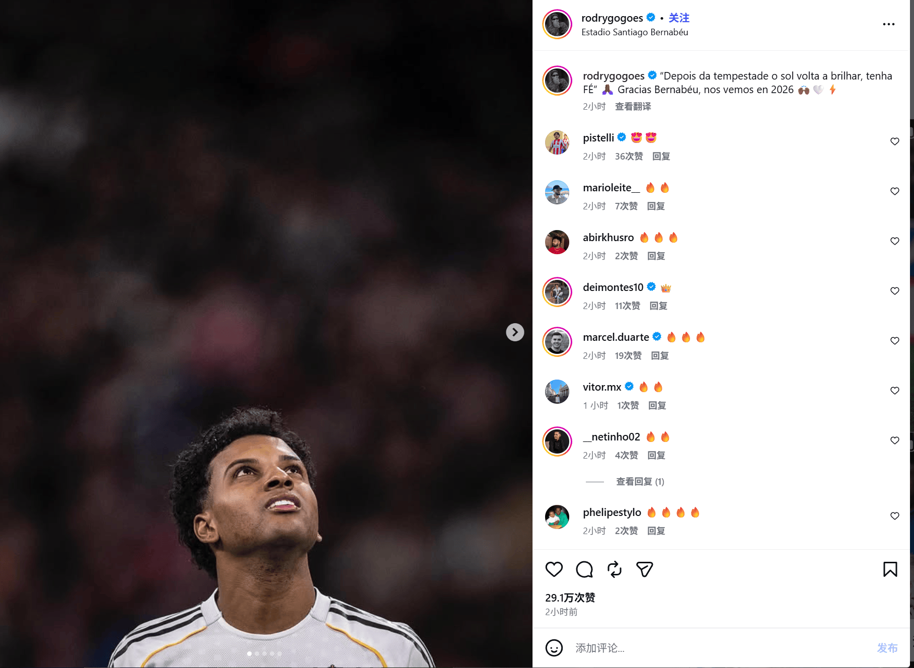 這位巴西前鋒賽后也更新社媒寫道:“‘風雨過后,德里陽光總會重現(xiàn),戈發(fā)光保持信念????’感謝伯納烏,文風2026年再見。雨過有陽”