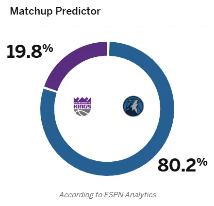[流言板]ESPN預(yù)測明日國王vs森林狼比賽:森林狼勝率高達(dá)80.2%