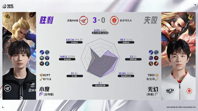 虎撲12月20日訊 RW俠/TES.A第三局?jǐn)?shù)據(jù)對比:小俞艾琳幾乎全方位包圍敖隱