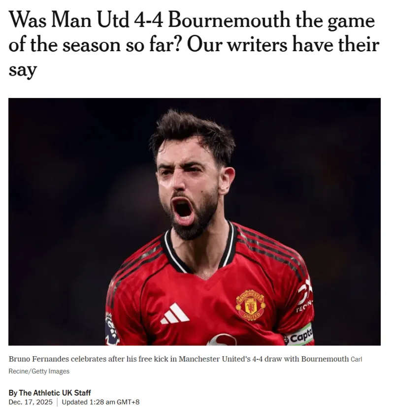 曼聯(lián)4-4伯恩茅斯:本賽季迄今最佳戰(zhàn)役?