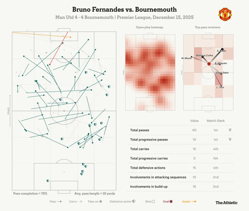 詹姆斯:這個(gè)問(wèn)題我沒有明確答案。B費(fèi)似乎總能成為曼聯(lián)進(jìn)攻端最核心的存在,他轟入一記精彩任意球?qū)⒈确职鉃?-3,此前還貢獻(xiàn)了又一次助攻。但與此同時(shí),有個(gè)細(xì)節(jié)幾乎被忽略:正是B費(fèi)在伯恩茅斯半場(chǎng)的一次糟糕停球,給了客隊(duì)反擊機(jī)會(huì),最終促成了他們的第三粒進(jìn)球。