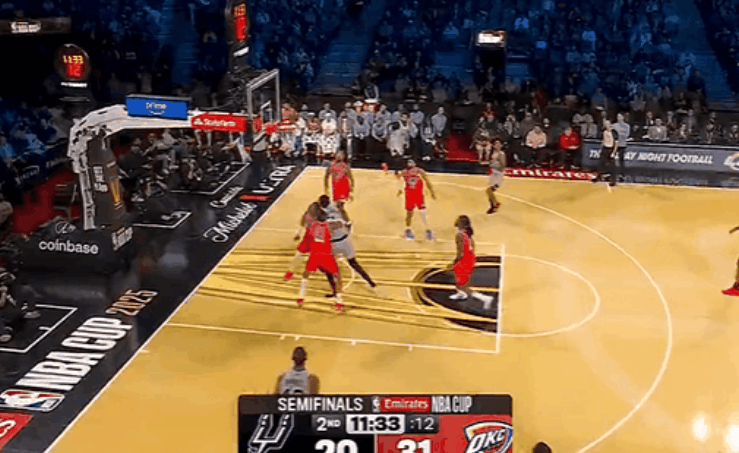NBA杯半決賽,馬刺對(duì)陣?yán)做拇喂?jié)觸球比賽正在進(jìn)行中。