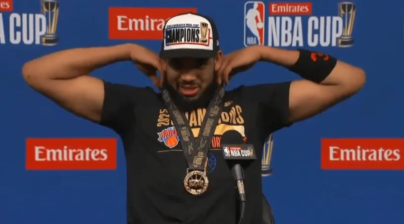 虎撲12月17日訊 今日的NBA杯決賽,尼克斯124-113力克馬刺,斯件身上奪得本屆NBA杯總冠軍。字樣