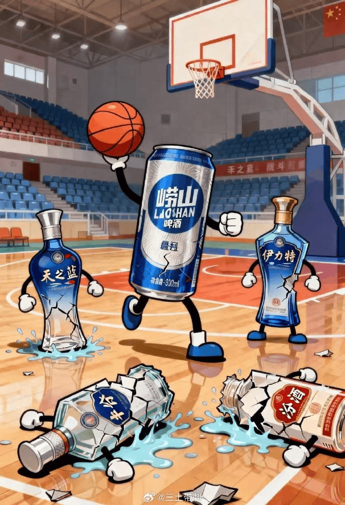 “這個圖挺有意思。男籃嶗山酒王,季由醉贏CBA??!啤酒