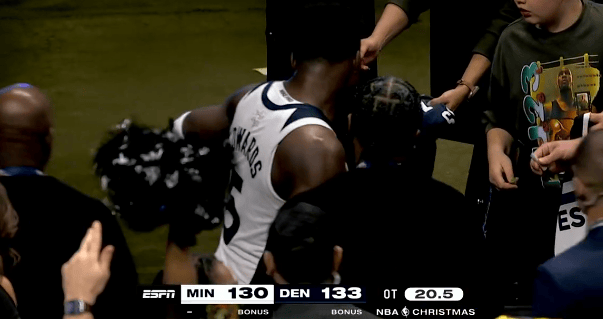 加時賽還剩20.5秒時,時刻愛德華茲扣籃得手后干擾約基奇發(fā)球吃到第一次技術(shù)犯規(guī),連吃兩次隨后在下一個回合再次不滿裁判判罰,技術(shù)再吃一次技術(shù)犯規(guī),犯規(guī)連吃兩T被驅(qū)逐出場。被驅(qū)