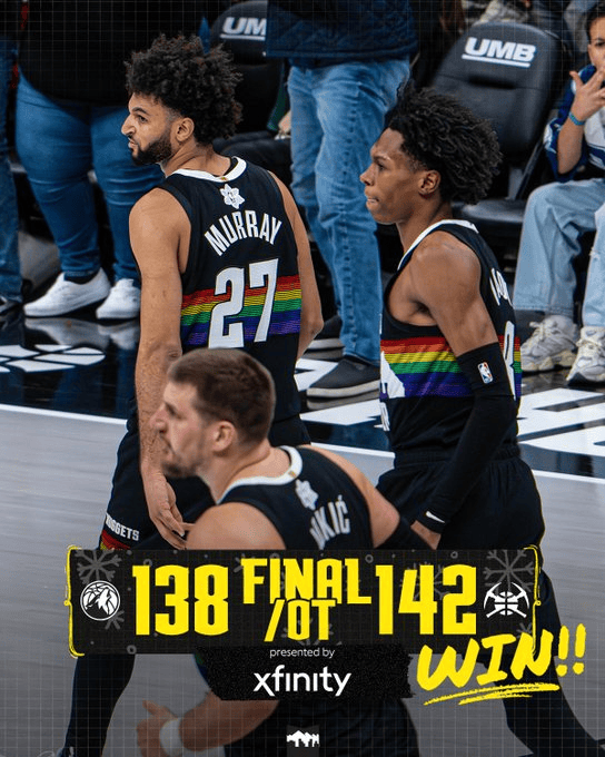 虎撲12月26日訊 今日NBA圣誕大戰(zhàn),掘金142-138戰(zhàn)勝森林狼。場比