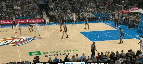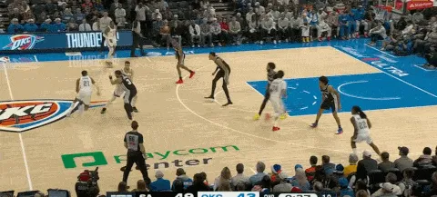 這種大開大合的場(chǎng)面下,考驗(yàn)的依然是穩(wěn)定性,雷霆很快在進(jìn)入銜接段后有些跟不上節(jié)奏,主要的問題仍然是SGA不持球或不在場(chǎng)時(shí)的進(jìn)攻開發(fā)。