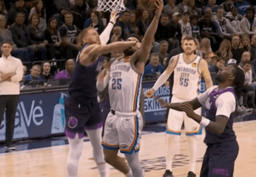 NBA常規(guī)賽,雷霆對(duì)陣森林狼的防守比賽正在進(jìn)行中。
