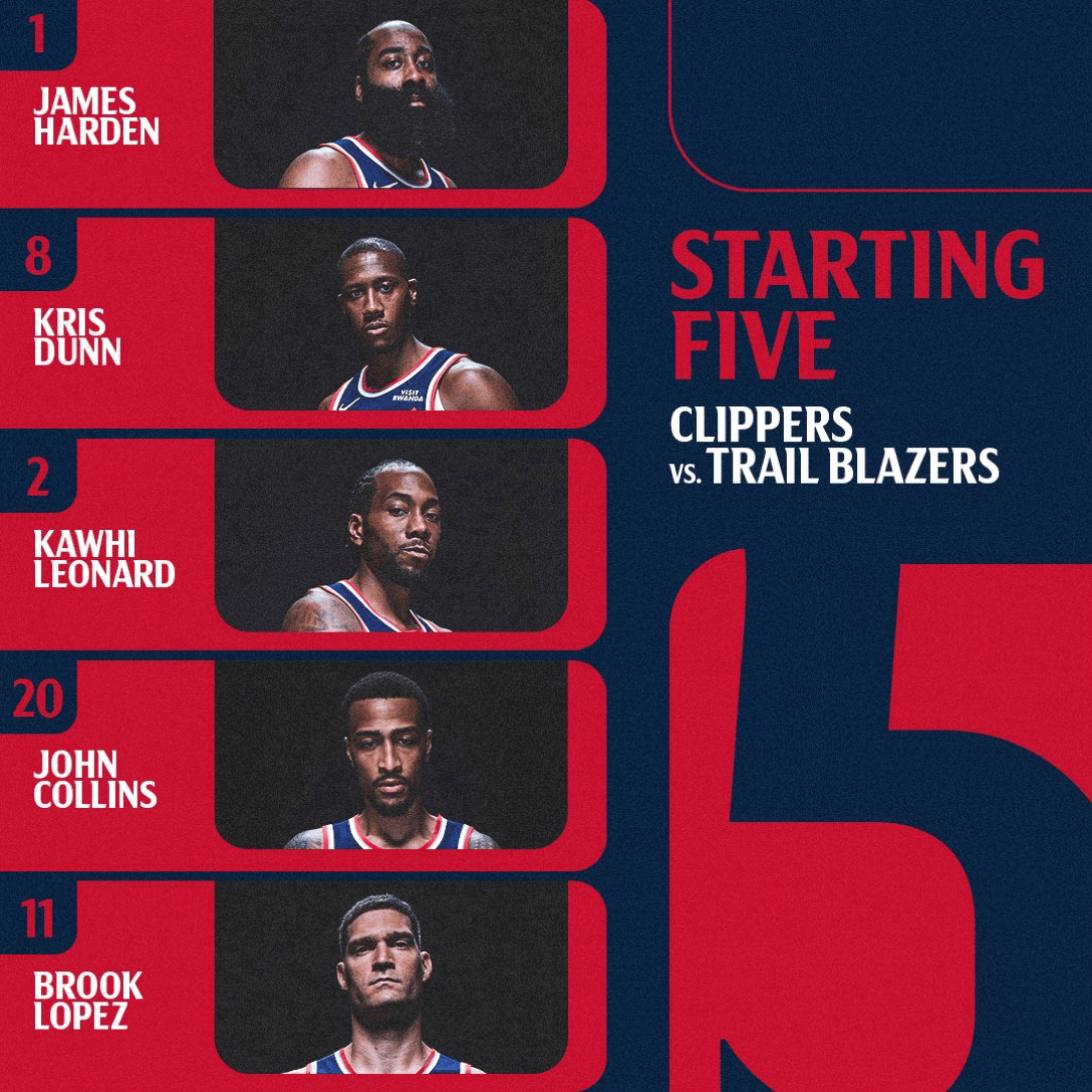 [流言板]快船今日首發(fā):哈登、鄧恩、倫納德、科林斯、洛佩斯