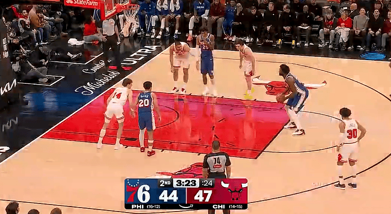 虎撲12月27日訊 NBA常規(guī)賽,76人對陣公牛的犯規(guī)比賽正在進行中。