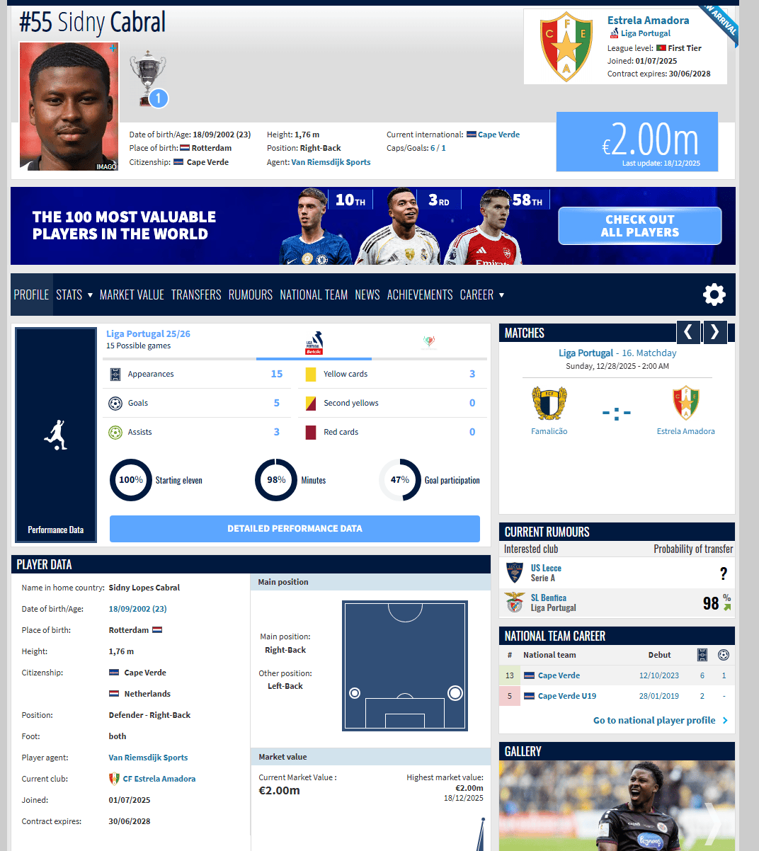 埃斯特雷拉還將保留洛佩斯-卡布拉爾10%的所有權(quán),這位球員的進(jìn)步令人矚目。埃斯特雷拉的主席本人對與本菲卡達(dá)成的這筆交易非常滿意。