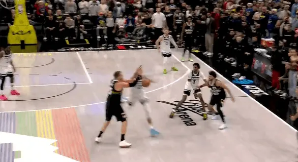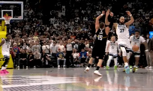 [流言板]戈貝爾搶斷約基奇,掘金挑戰(zhàn)成功約基奇罰球、戈貝爾6犯離場
