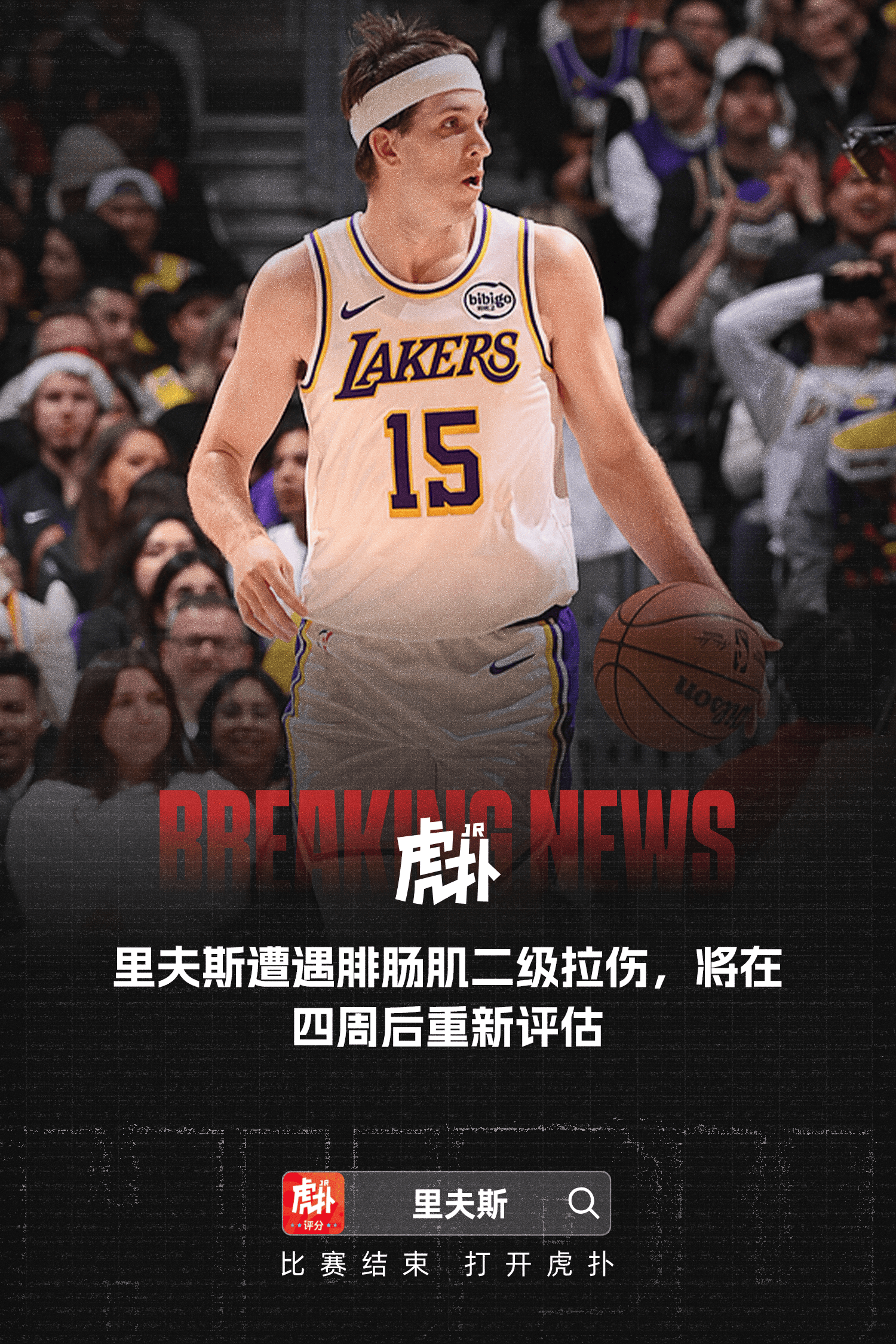 虎撲12月27日訊 根據(jù)知名記者Shams的報道,湖人球員奧斯汀-里夫斯遭遇左腿腓腸肌二級拉傷,里拉傷將至少傷缺四周時間。夫斯腓腸