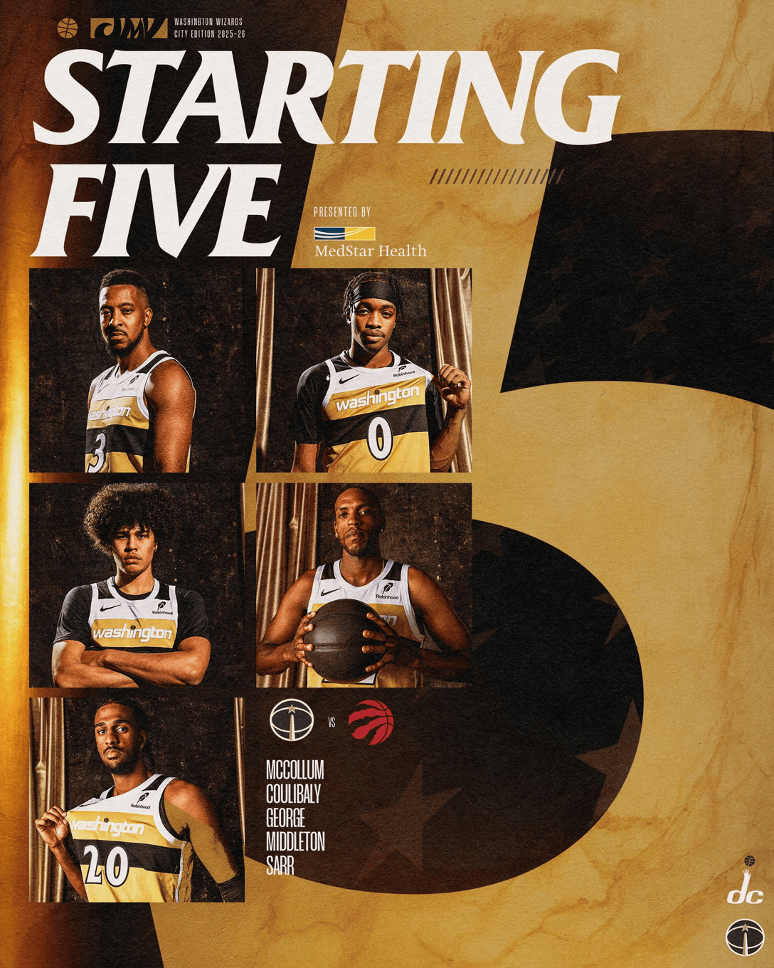 奇才首發(fā):麥科勒姆、科勒庫利巴利、姆庫喬治、治米米德爾頓、薩爾