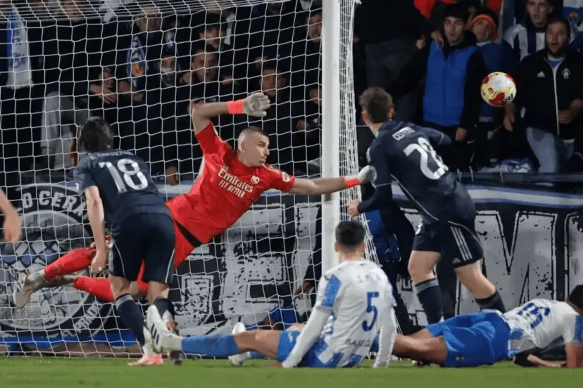 虎撲12月18日訊 在本賽季皇馬的國王杯首秀中,盧寧重回首發(fā)陣容。塔拉韋拉打進第二球后,在最后時刻全力壓上,試圖扳平比分。第93分鐘,伊賽亞的射門迫使盧寧完成了一次精彩的飛身撲救,化解了原本可能出現(xiàn)的絕平進球,也避免了比賽被拖入加時。