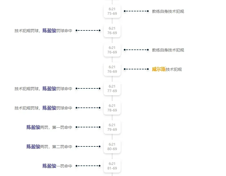 這第六個(gè)罰球把人看懵了。姜宇星搶籃板犯規(guī)罰兩次,楊鳴兩次技術(shù)犯規(guī)各罰一次,威爾斯技術(shù)犯規(guī)罰一次,加起來不應(yīng)該是5次嗎?這第六個(gè)罰球的依據(jù)是什么?