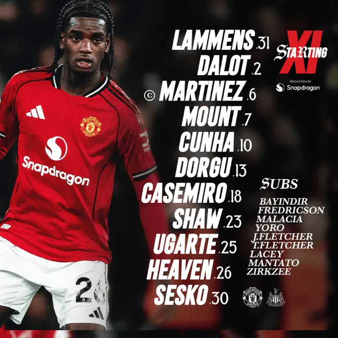 曼聯(lián)首發(fā):31-拉門斯、2-達(dá)洛特、26-海文、6-利桑德羅-馬丁內(nèi)斯、23-盧克-肖、13-多爾古、18-卡塞米羅、25-烏加特、7-芒特、10-庫尼亞、30-舍什科