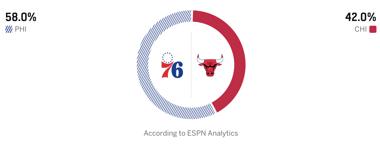 賽前,人勝美媒ESPN預測本場比賽,牛勝76人勝率58.0%,流言率公率公牛勝率42.0%。測人