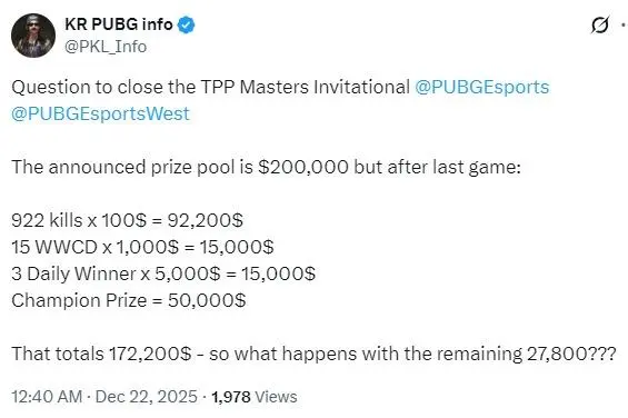 韓國PUBG博主則關(guān)注此次PPMI獎金沒有發(fā)放完這一問題,結(jié)余2.78萬美金~