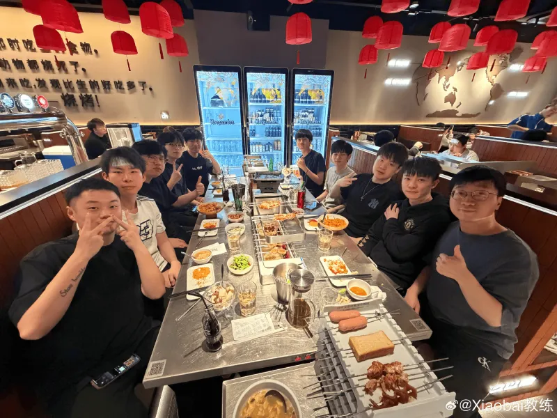 虎撲12月25日訊 JDG副教練Xiaobai曬賽后聚餐照: