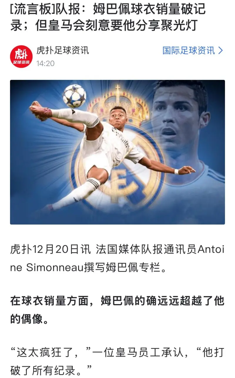 看一則新聞?dòng)懈校钒团寰褪且粋€(gè)球員,一個(gè)球員有他自己的能力和特征。要求一個(gè)球員在此基礎(chǔ)上做出多么巨大的改變可能微乎其微,更別說姆巴佩這種球員。FP引入姆巴佩我始終覺得最大的考慮還是俱樂部利益,事實(shí)證明,這位伯納烏10號(hào)確實(shí)帶來了巨大的收益和人氣。FP不懂球,但他懂商業(yè),他在乎的就是俱樂部在這方面的提升,只有在巨星閃耀的營(yíng)銷下,皇馬這塊百年招牌才能不落下風(fēng)。