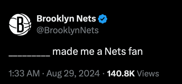 虎撲08月29日訊 籃網(wǎng)官方在X上發(fā)文與球迷互動(dòng)。