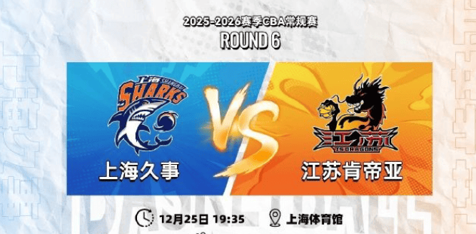 配文:12月25日19:35,媒分2025-26賽季CBA常規(guī)賽第六輪,享賽江蘇肯帝亞將繼續(xù)連客之旅,告前二番挑戰(zhàn)上海久事。瞻球戰(zhàn)上