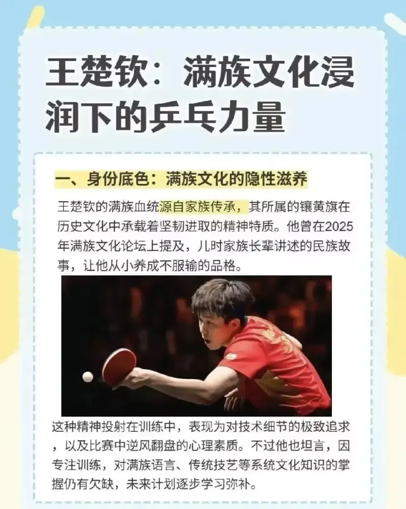 王楚欽:滿族文化浸潤下的乒乓力量