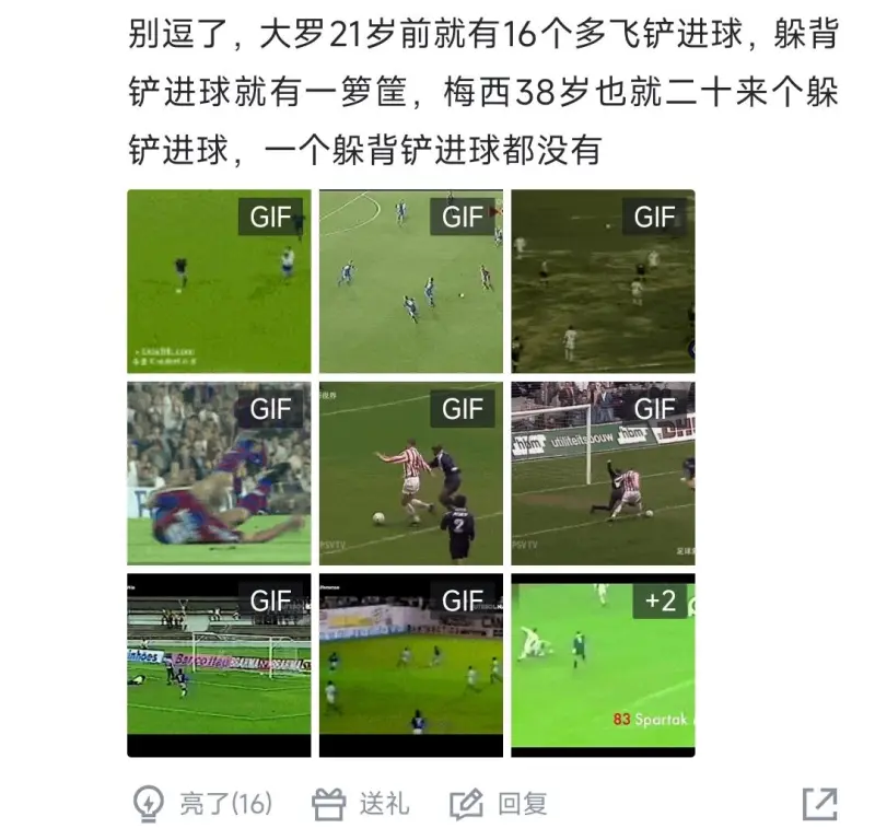 然后看了一下他的gif,第一張圖,鏟球人離了五米遠(yuǎn)。如果這算背后鏟球的話,以這個(gè)為標(biāo)準(zhǔn),翻了一下那年和梅西國家隊(duì)的進(jìn)球,光是91梅那年面對(duì)背后鏟球的進(jìn)球就有10個(gè)。。我在樓下發(fā)視頻!注意!我這僅僅是梅西一年的,加上國家隊(duì)的幾個(gè)。