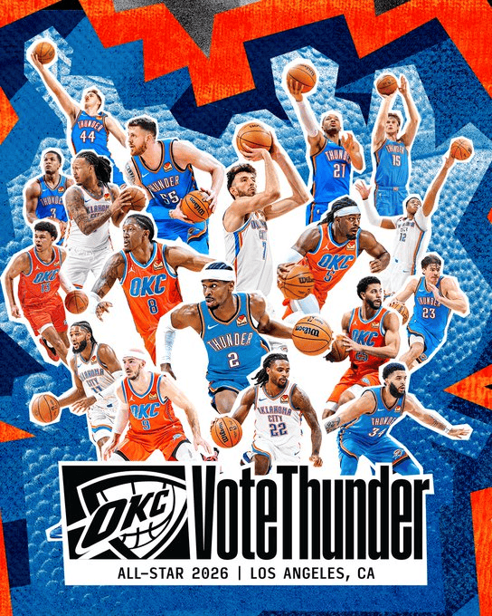 [流言板]聯(lián)盟第一!雷霆官方分享為全明星造勢(shì)的海報(bào),全員出鏡