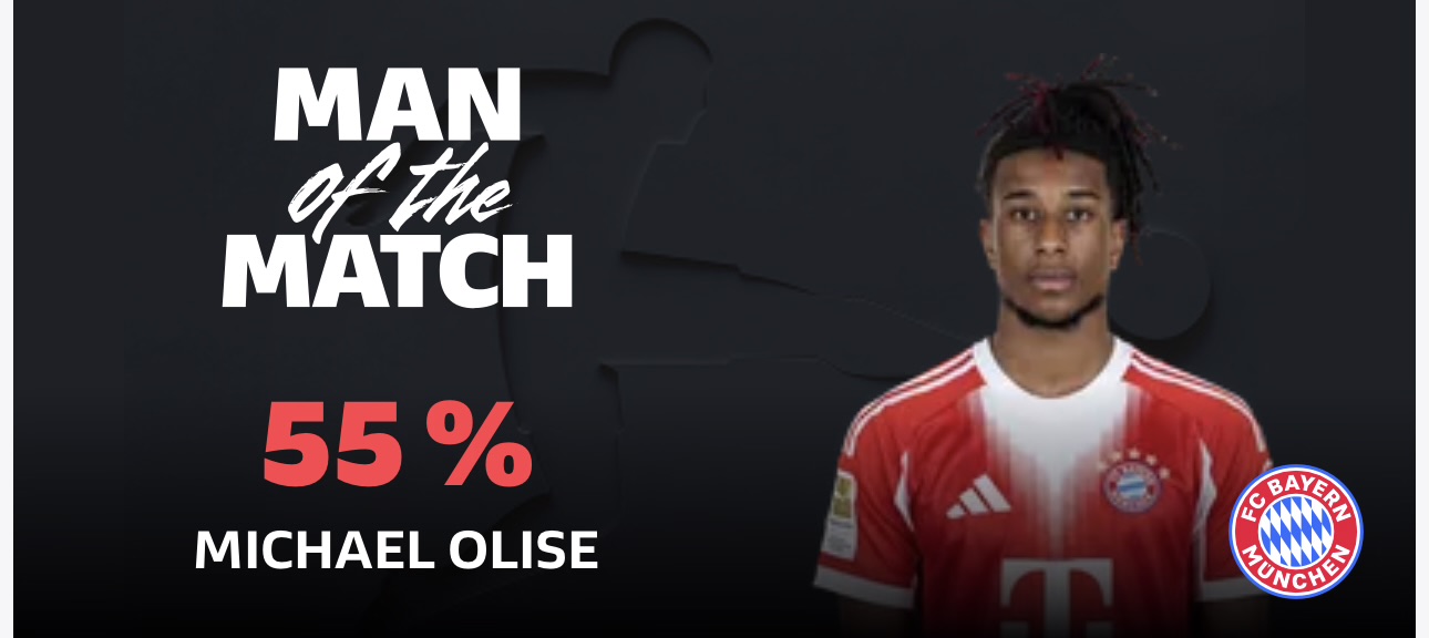 賽后奧利塞以55%的鍵傳得票率當(dāng)選本場最佳球員。