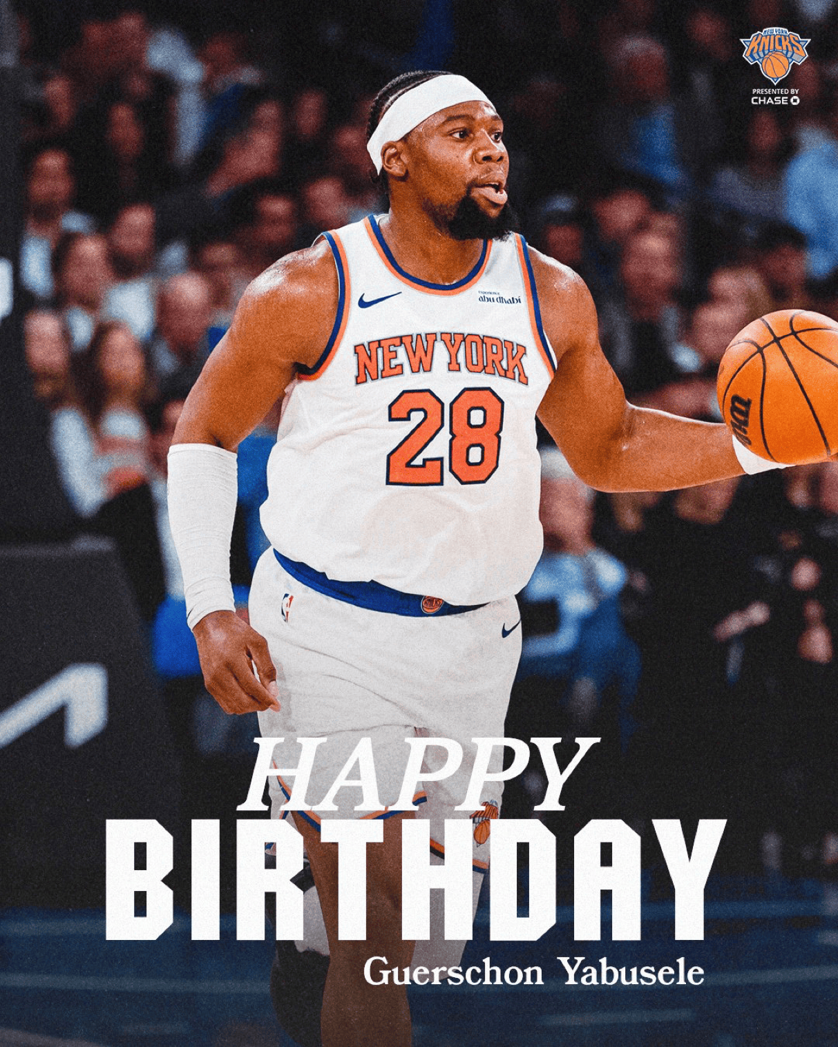 虎撲12月18日訊 尼克斯官方更新了X,曬出一張尼克斯球員蓋爾雄-亞布塞萊的板歲海報照慶生。